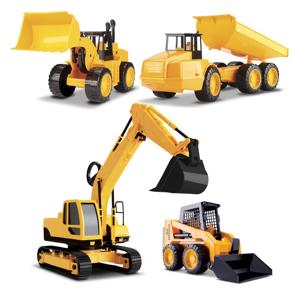 Kit 4 em 1 Carrinhos Trator Escavadeira Bob Workers Fora da Estrada