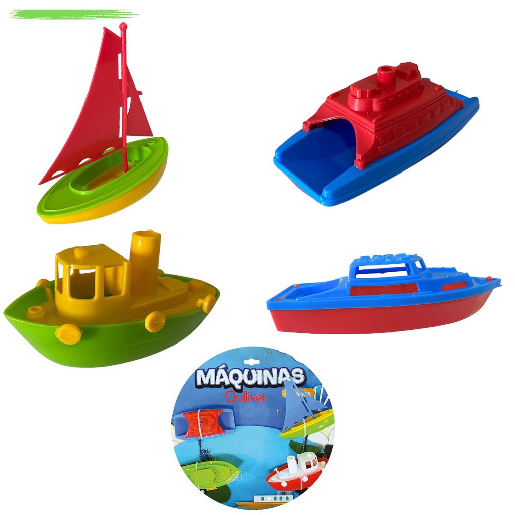 Brinquedo de Banho Infantil Kit 4 Barcos Máquinas Gulliver