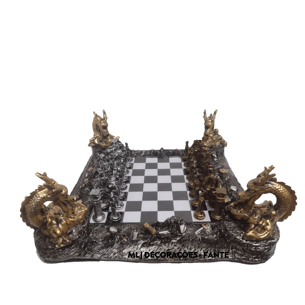 jogo de xadrez temático medieval mod 3 tabuleiro resina