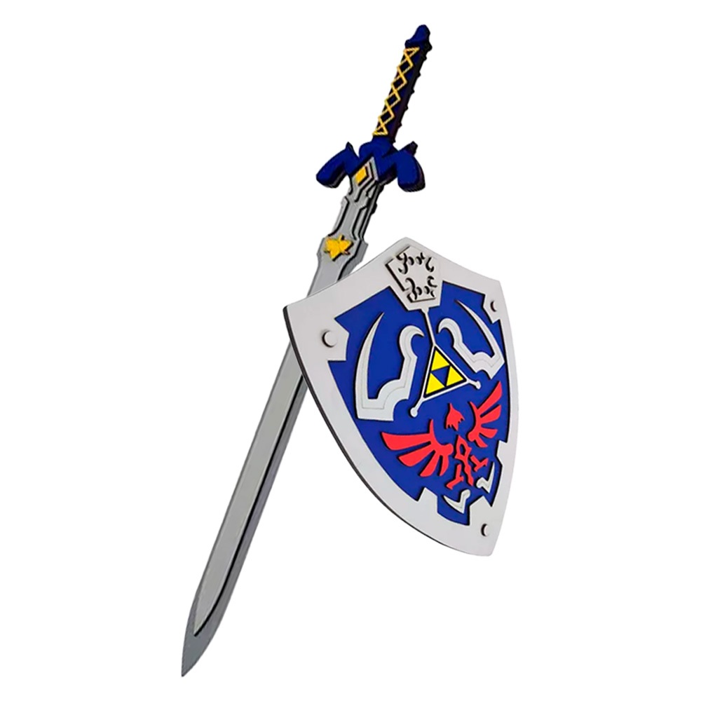 Kit Espada Escudo Zelda Master Sword 3D Relevo MDF Placa Decorativa Gamer Decoração Quarto