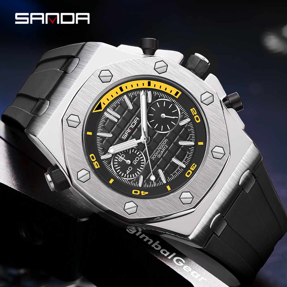SANDA Relógios Esportivos De Luxo À Prova D'água Com Visor Duplo Cronógrafo Homens