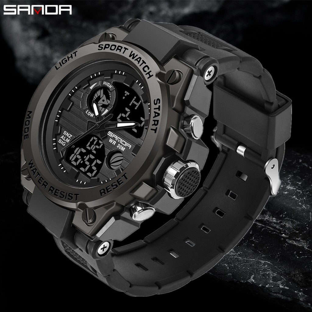 SANDA Relógios Esportivos Masculinos De Moda Contagem Regressiva À Prova D'água Militares Digitais LED 6052