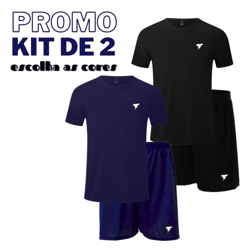 Kit 2 Conjuntos Camiseta Manga Curta e Bermuda Masculina Dri Fit Conjunto Esportivo Símbolo Refletivo