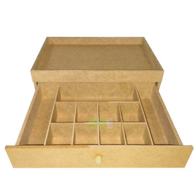 Caixa Para Especiarias Gin - Mdf Cru E Gaveta Com Divisórias