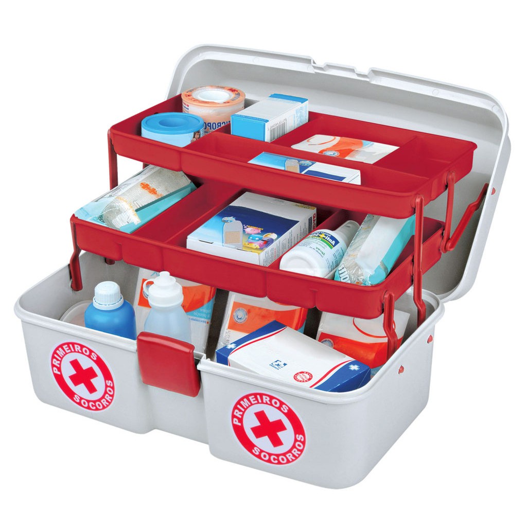 Maleta Caixa Primeiros Socorros Organizadora De Medicamentos e Remédios C/ 2 Bandejas Kit Emêrgencia TOY