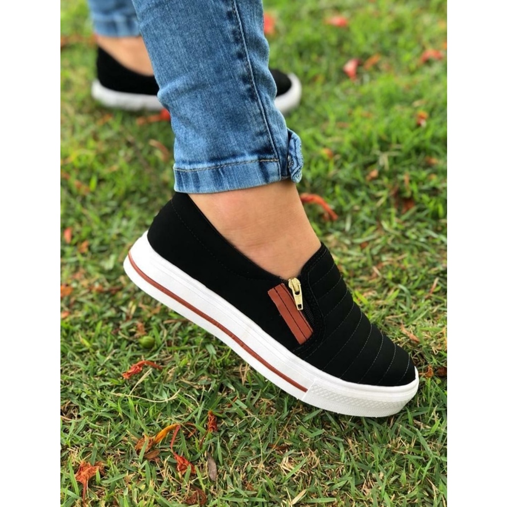Tênis Sapatênis Sapatilha feminino Slip On Zíp casual Leve e confortável envio imediato