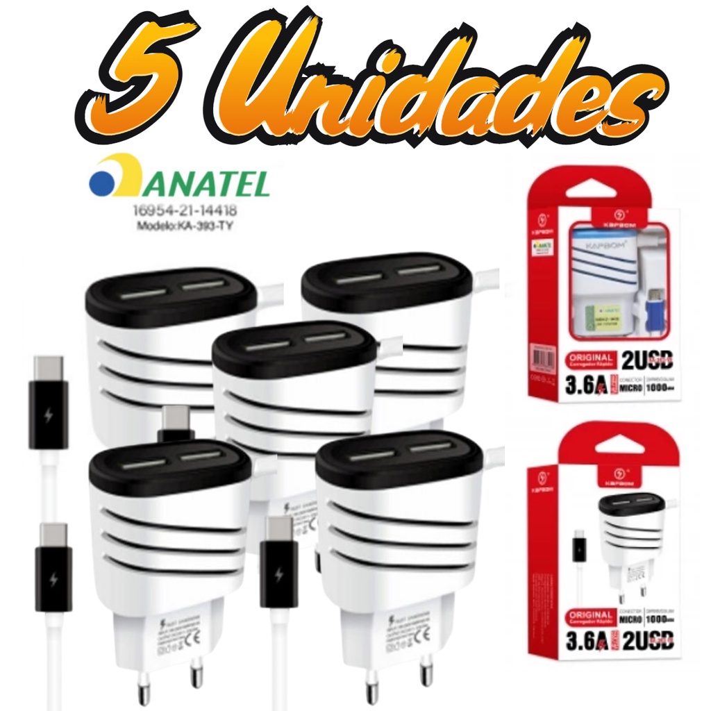 Kit Carregadores Turbo/ Rápido 3.6a 2 Usb Tipo C Anatel Atacado Revenda