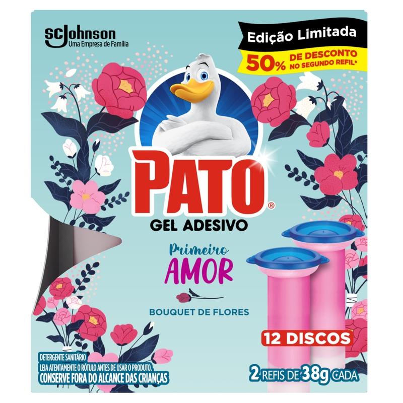 Detergente Sanitário Pato Gel Adesivo Bouquet de Flores Primeiro Amor 38g 50% desc à cada 2 unidade