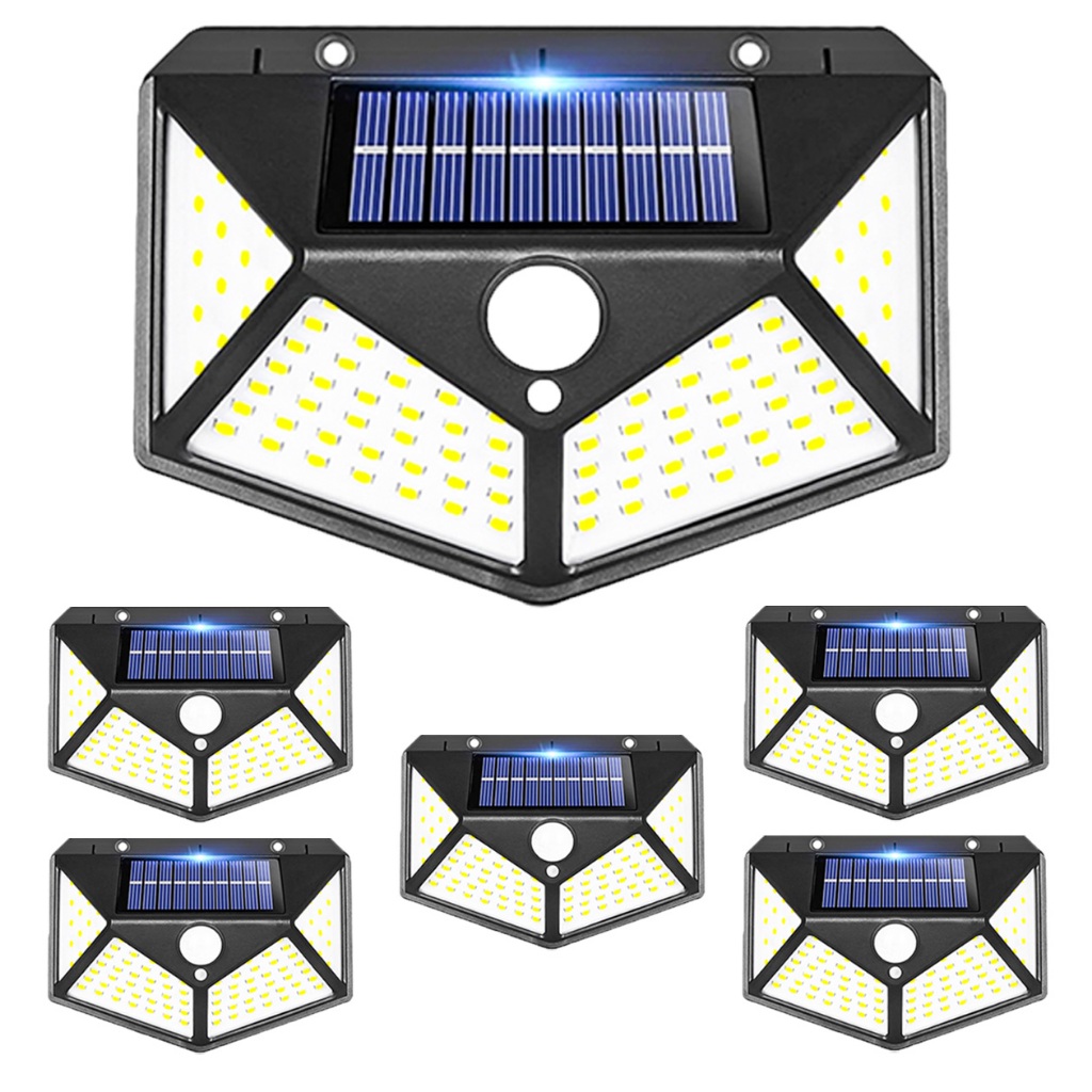 KIT6 Luminária Solar 100 Led Com Sensor Para Jardim Externa Prova D'água Luz Led Solar Lâmpada