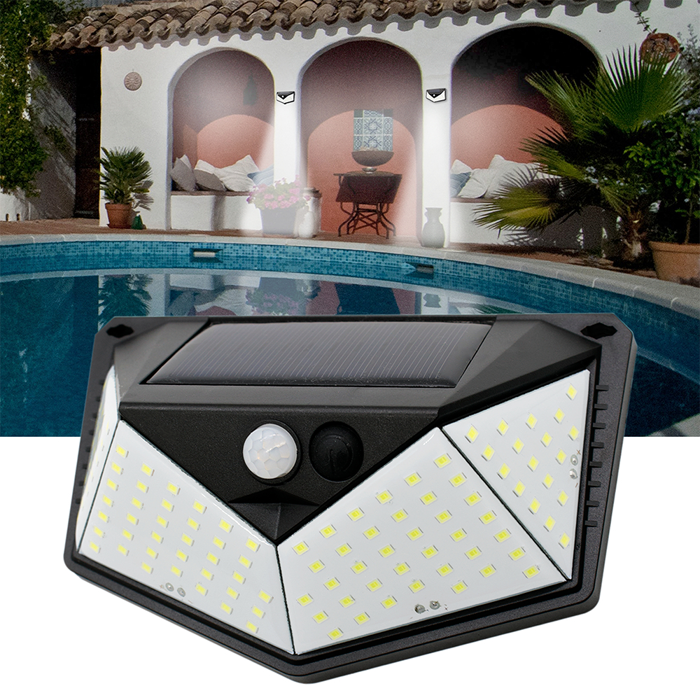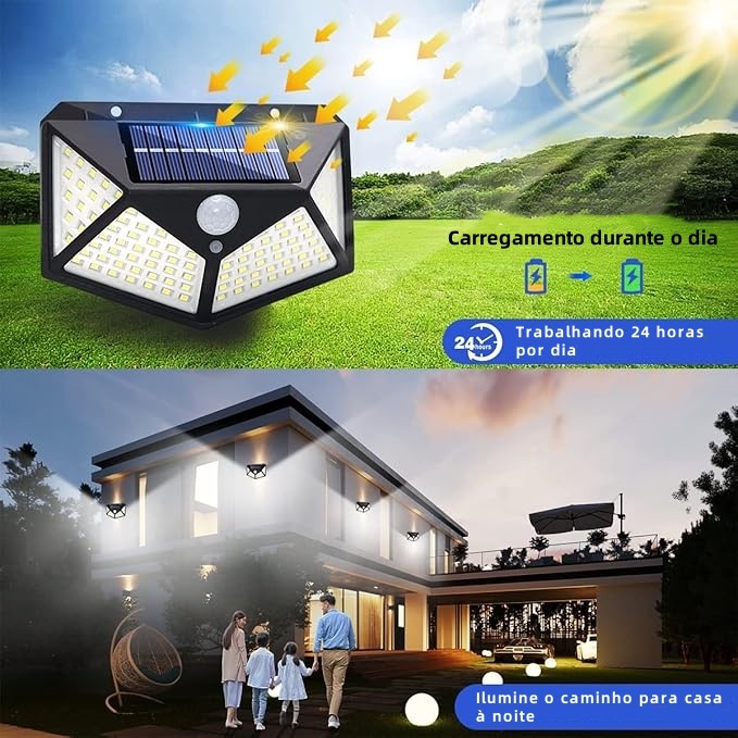 Luminária Solar 100 Led Com Sensor Para Jardim Externa Prova D'água Luz Led Solar Lâmpada