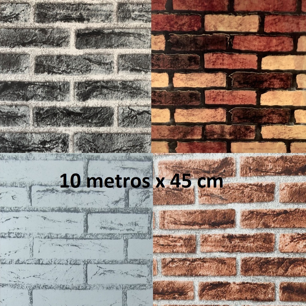 Papel de Parede 3D 10 METROS x 45CM Adesivo Autocolante Tijolo Tijolinho Pedra