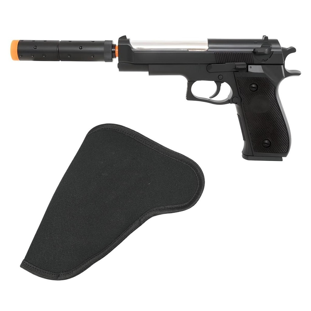 Pistola Airsoft Arma Spring 24/7 Vigor V310 + 1000 BBs 0.12g + Coldre Cinto + Silicone