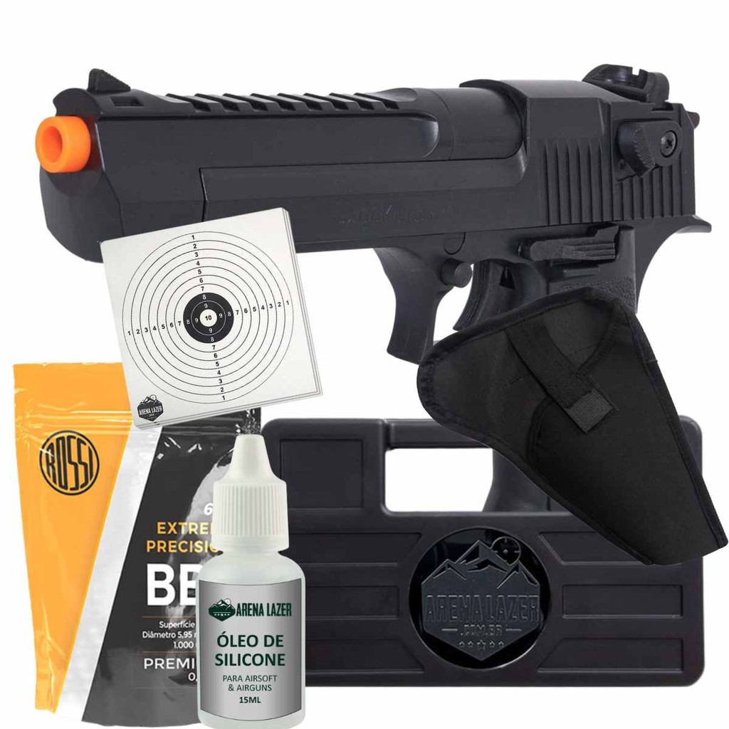 Pistola Airsoft QGK SDE BK + Coldre + Maleta + 1000 BBs + Óleo + 50 Alvos | Spring 6mm Desert Eagle