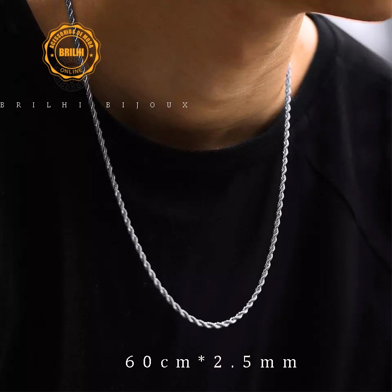 Corrente colar cordão trançado aço Inox feminino /masculino 60cm