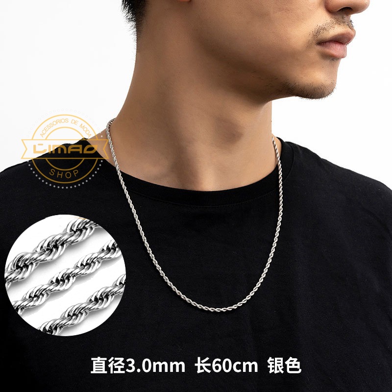 kit corrente de prata colar cordão masculino/feminino trançado Baiano colares aço Inox 45/60/70cm