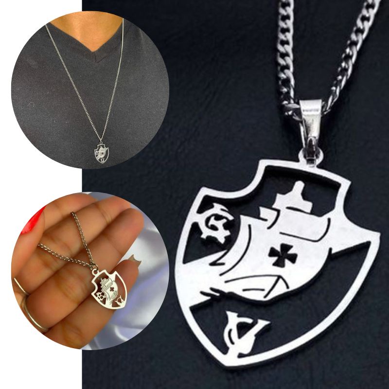 Kit 2 Cordão Corrente Grumet 45cm + 60cm Masculino Feminino Pingente Escudo Vasco Aço Inox
