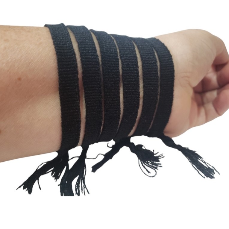 Kit 6 Pulseiras Tornozeleiras De Pano Preta Rock Hippie