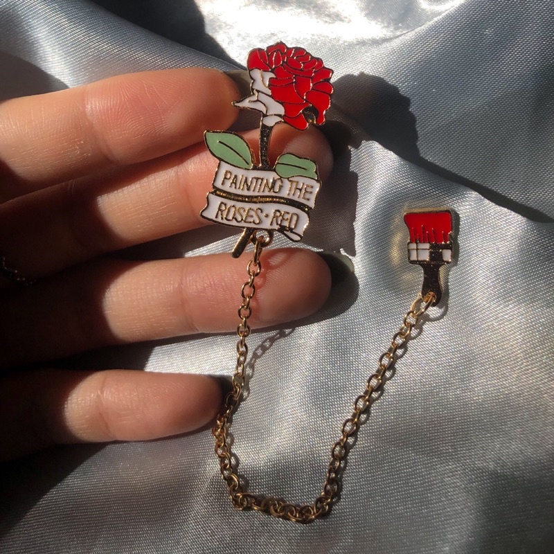 Pin “Painting the roses red” de Alice no País das Maravilhas | Pintando rosas pincel Wonderland pins de lapela corrente chain