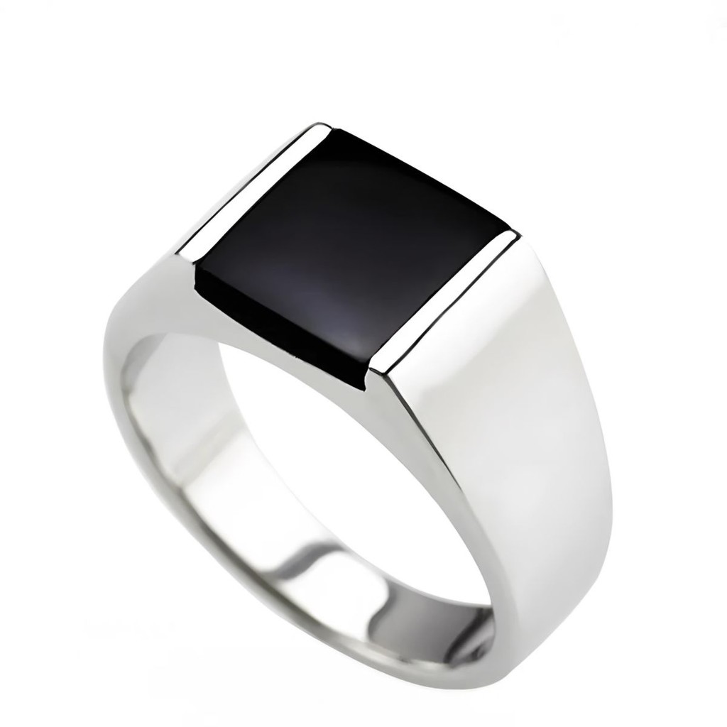 Anel Masculino Dedeira Prata Pedra Preta Onix Aço Inox 316L
