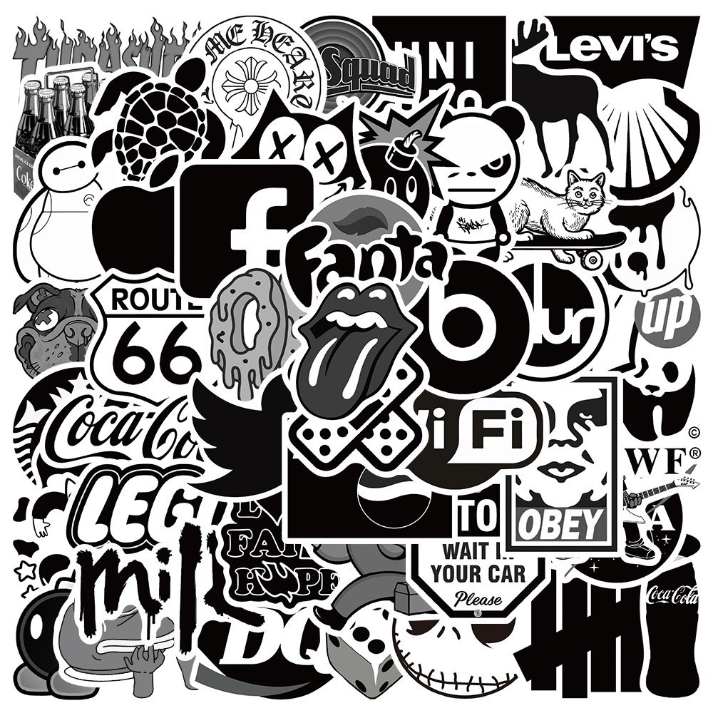 50 Pcs Bonito Dos Desenhos Animados Preto Mundos Da Moda À Prova D'água Adesivo Skate Snowboard Retro Graffiti Vinil Notebook