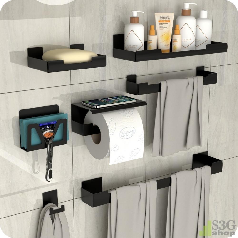 Kit Acessórios Para Banheiro Inox Com Adesivo 6 Peças ELG