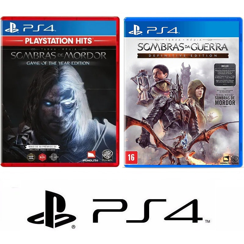 2 JOGOS - Sombras de Mordor + Sombras da Guerra - Edições Goty e Definitive - Dublado - Midia Fisica Original e Lacrado - PS 4