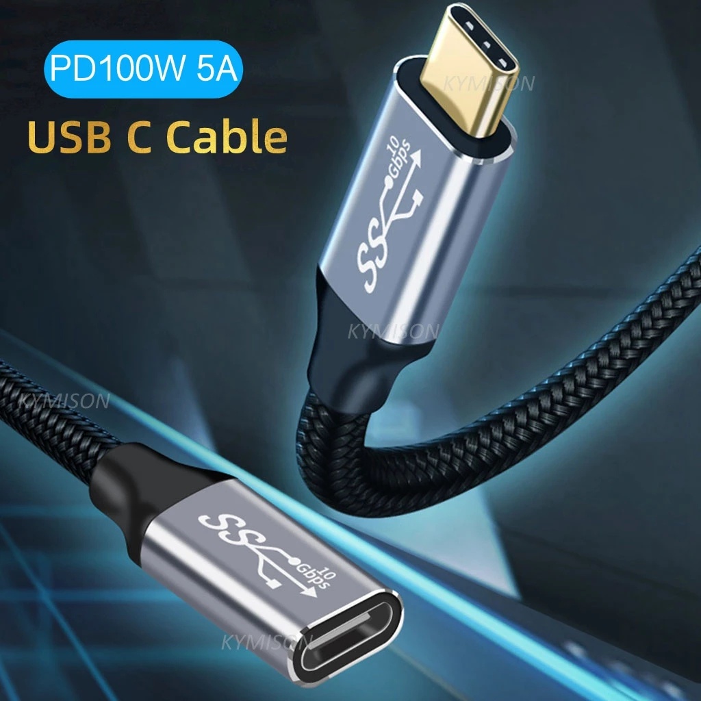 100W Gen2 Tipo C USB 3.1 Cabo Extensor De Extensão Macho Para-Fêmea Carregamento De Dados Interruptor De Laptop Smart Phone 0.5m 1m