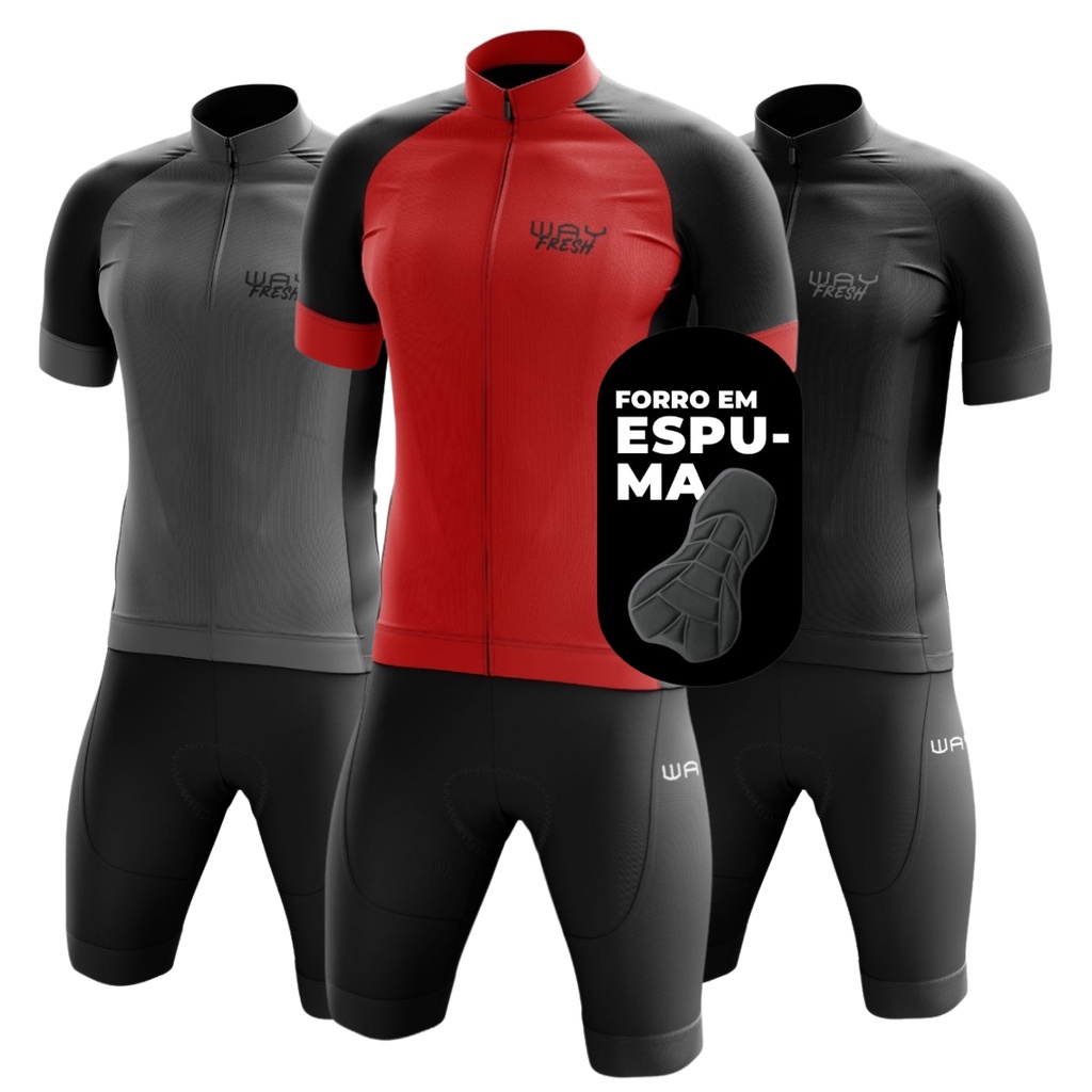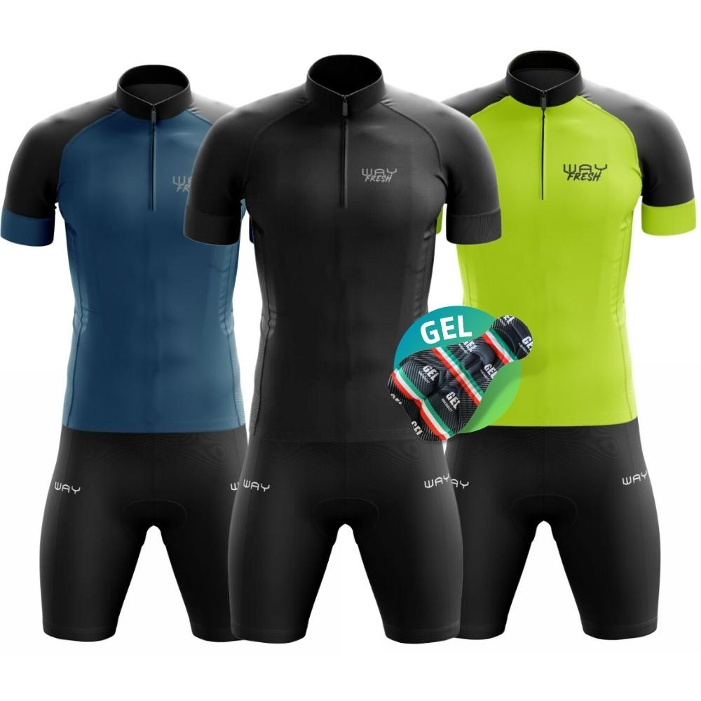 Conjunto Ciclismo Masculino Camisa Way Fresh e Bermuda Espuma Way Várias Cores