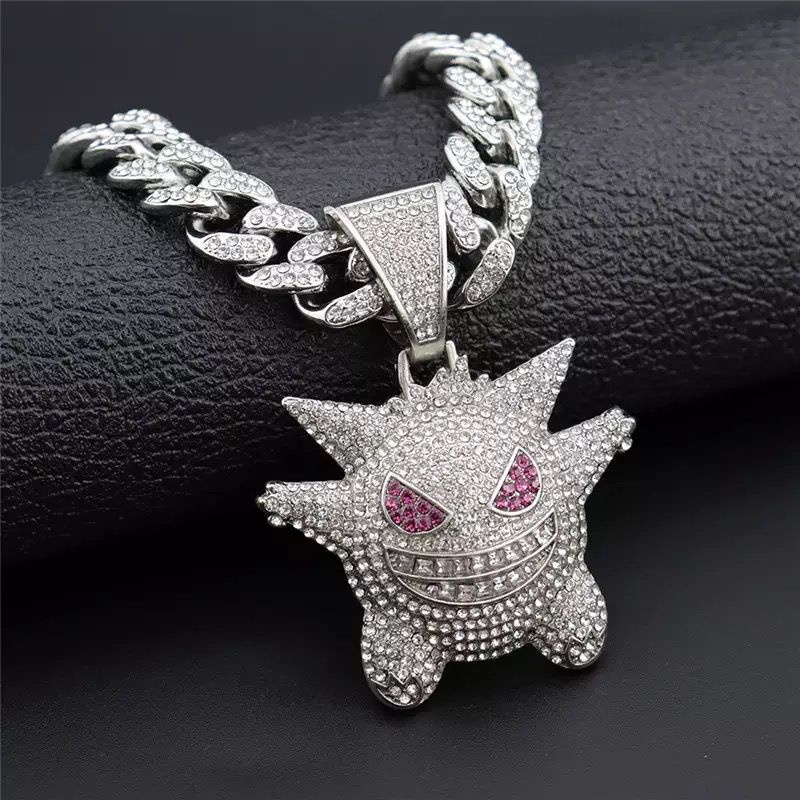 Colar HIP HOP Ice Cravejado Pokemón Gengar Trap Zircônias Brilhantes Qualidade TOP AAA+