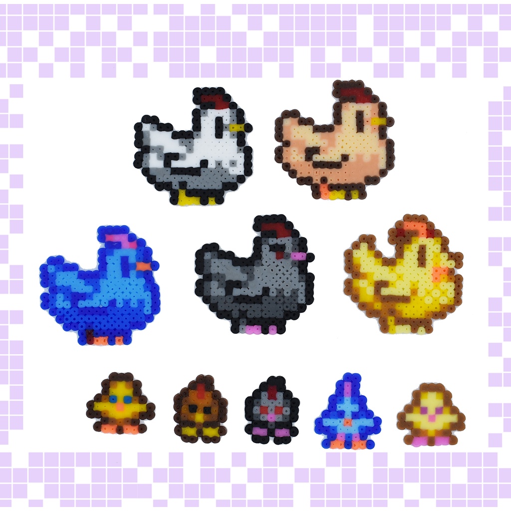 Stardew Valley Galinhas Chaveiro, Imã, Figura, Brincos ou Broches Pixel Art Perler Beads