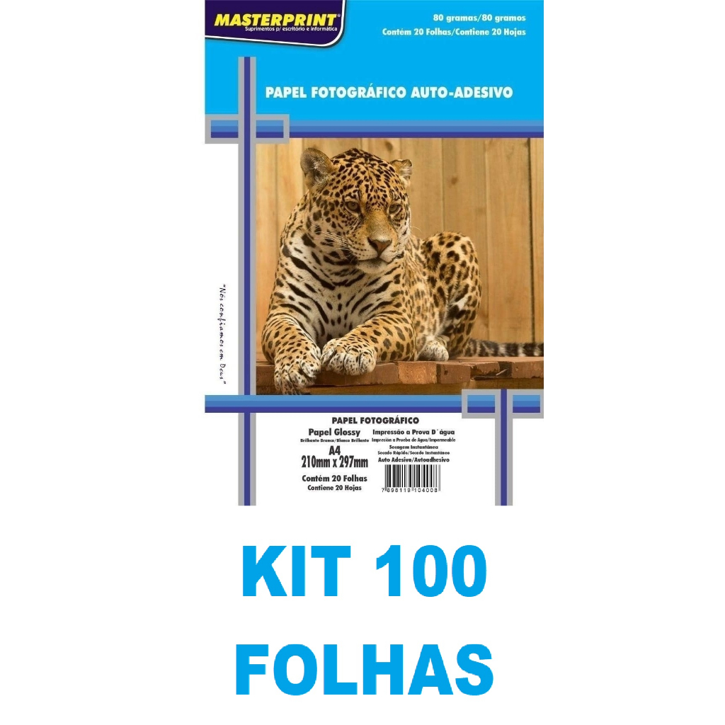 100 Folhas Papel Fotográfico Adesivo A4 Glossy 80g Masterprint Premium Secagem Imediata