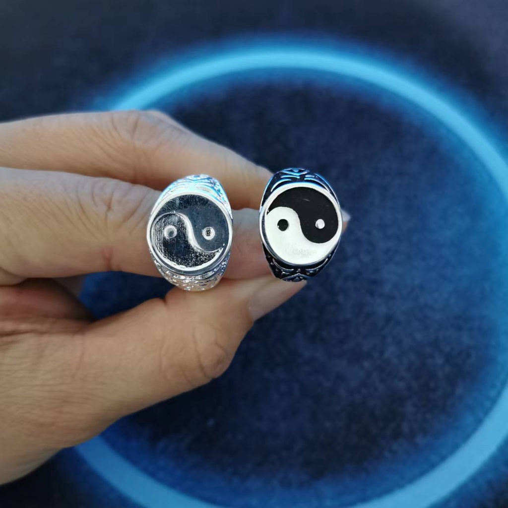 2 Pcs Anel Criativo Yin Yang Gossip Simples De Metal Gota De Óleo Tai Chi Pared Anéis Set Para Mulheres Homens Casal Melhor Amigo Presente Da Jóia
