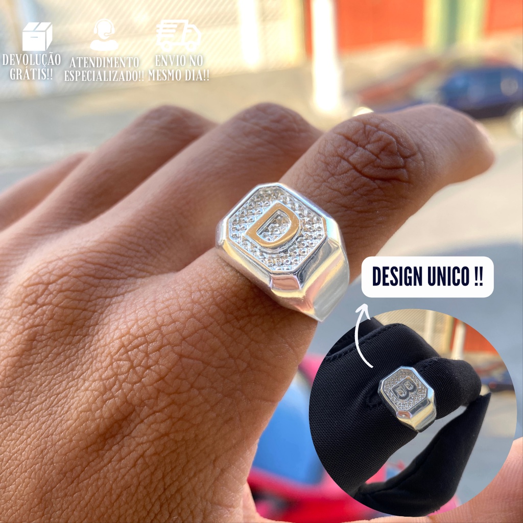 Anel Dedeira Masculina Letra D Banhado A Prata 925 Moderno Banhado