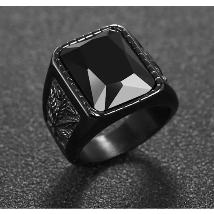 Anel Preto Dedeira Simbolo Cannabis Pedra Quadrada Preta