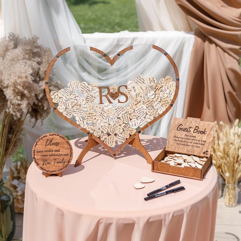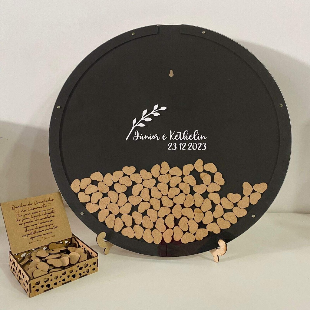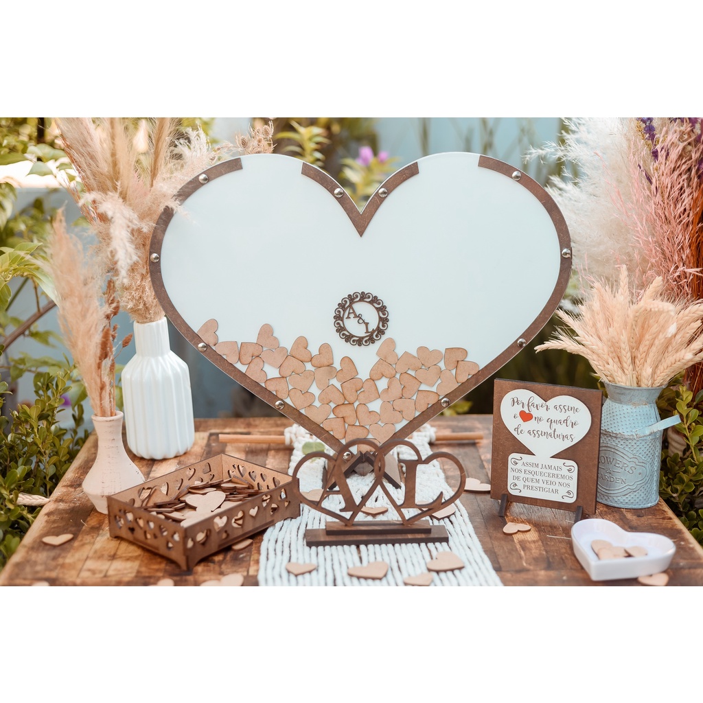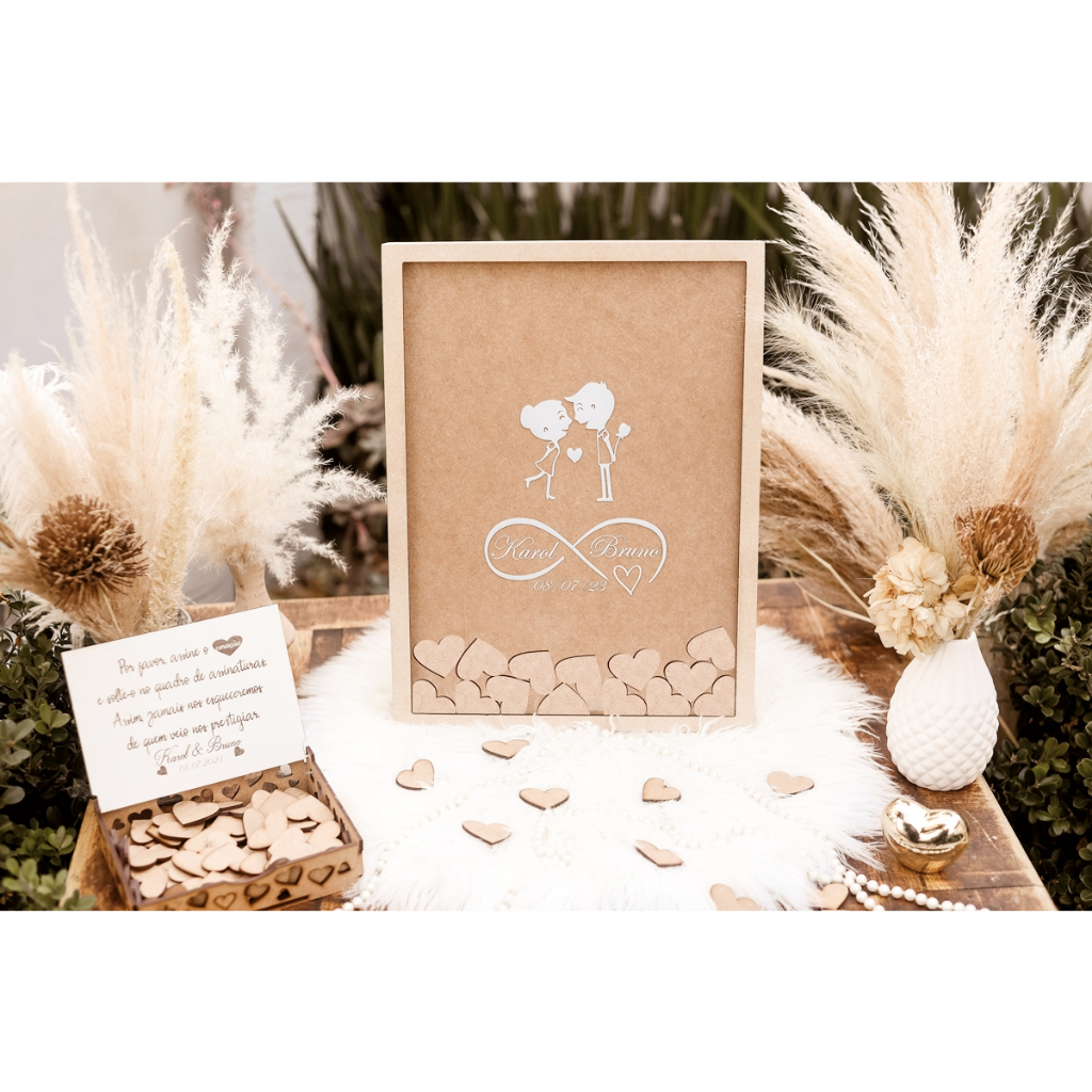 Quadro de Assinaturas para Casamento Aniversário em mdf 130 corações + Caixa com mensagem personalizada e suporte!!!!