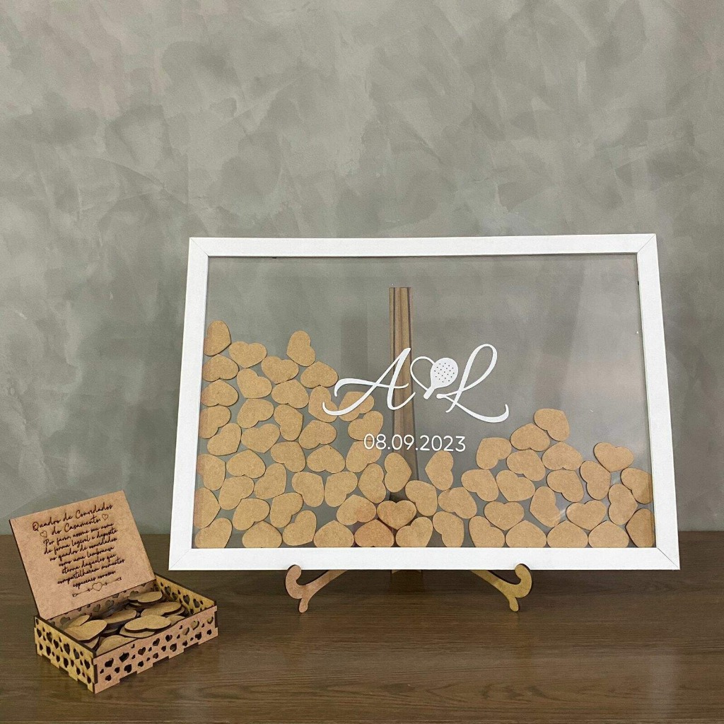 Quadro De Assinaturas Casamento 150 Corações + Caixa com frase personalizada