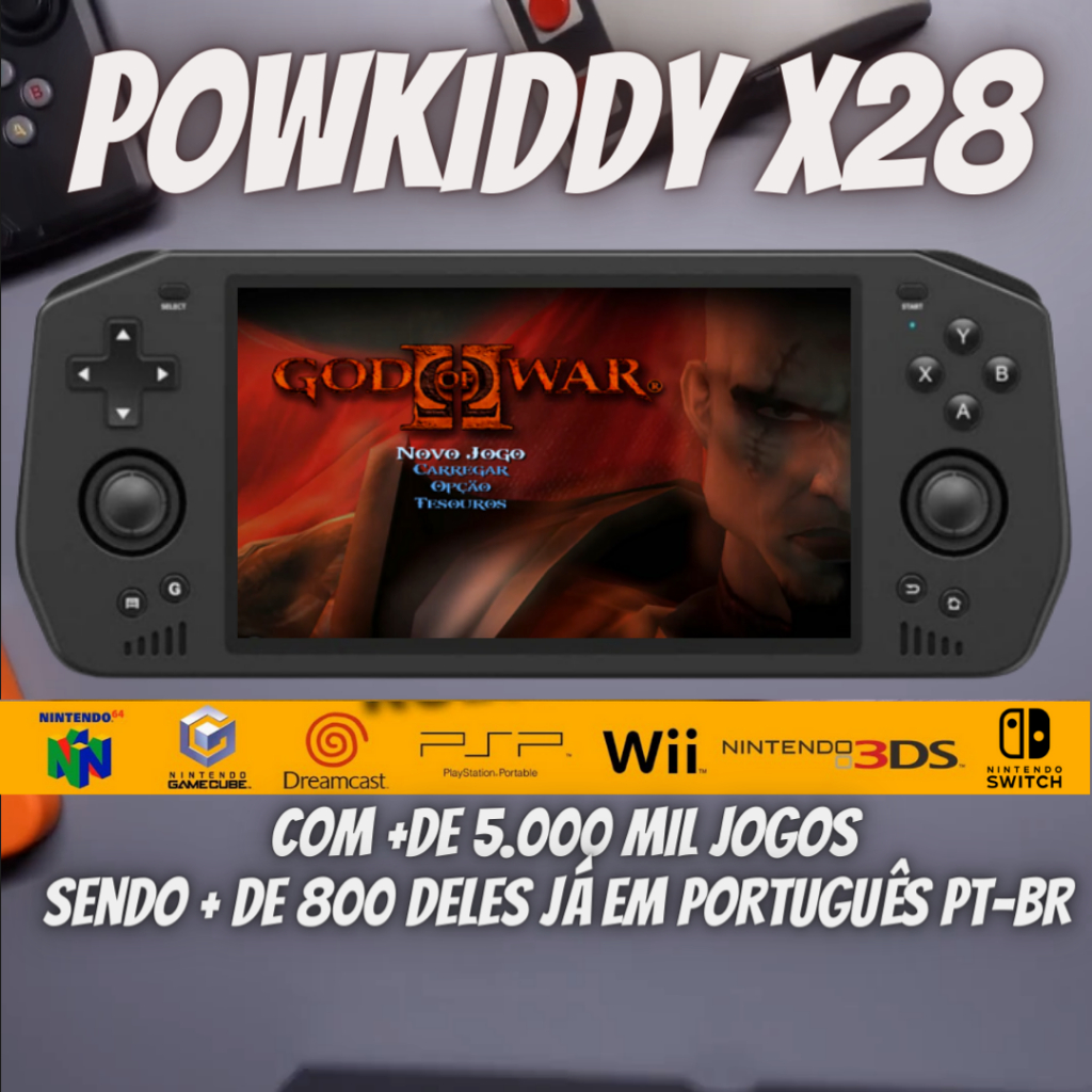 Powkiddy X28 Black Video Game Android 11 3ds NDS PSP G Cube Ps2 SNES Atualizado C/ Jogos - Novo