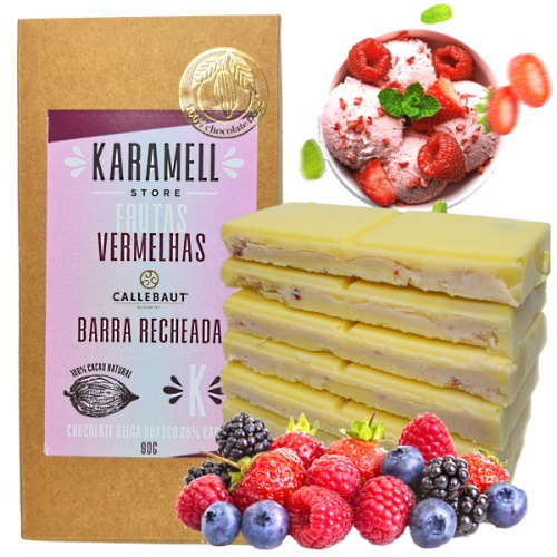 Chocolate Belga Branco recheado Mousse de frutas Vermelhas - Linha Karamell