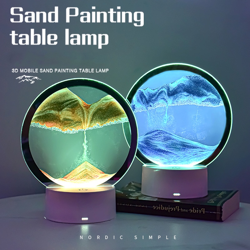 Pintura Criativa De Areia Movediça De Mesa 3D Tridimensional Colorida Pequena Luz Noturna Dinâmica De Vidro Para Decoração De Ampulheta De Cabeceira De Dormitório
