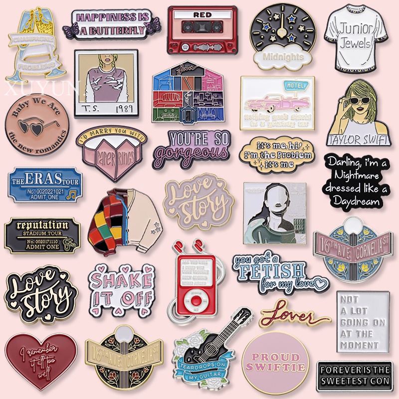 30 Estilos Cantor Taylor Swift Música Esmalte Pins Álbum Cobre Letras Metal Broches Concerto Crachás Periféricos Vestuário Acessórios Jóias Presentes Para Amigos