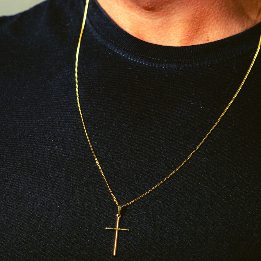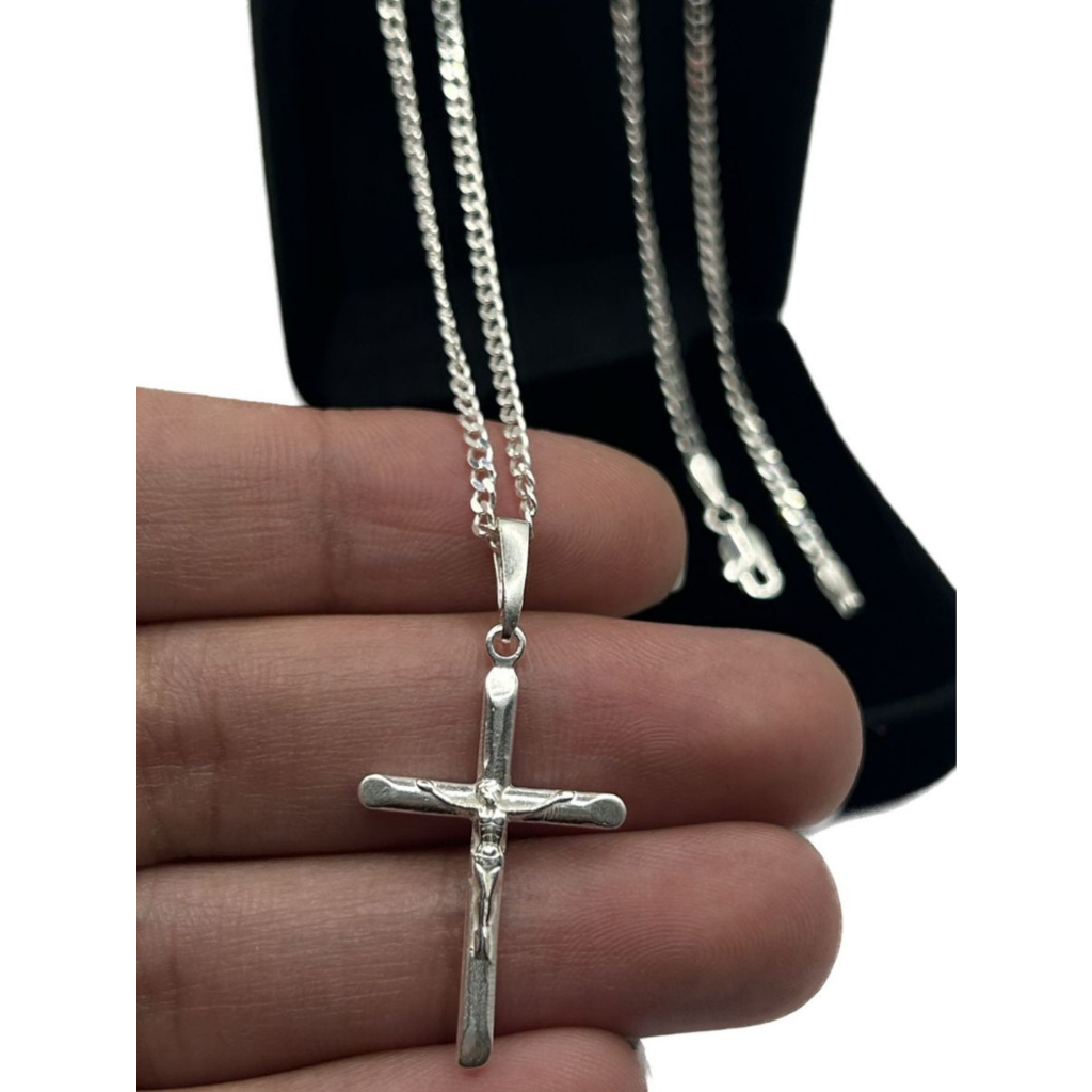 Corrente Masculina prata 925 Cordão Grumet 70cm com Pingente Cruz Aço inoxidável Feminino (Sem caixa)