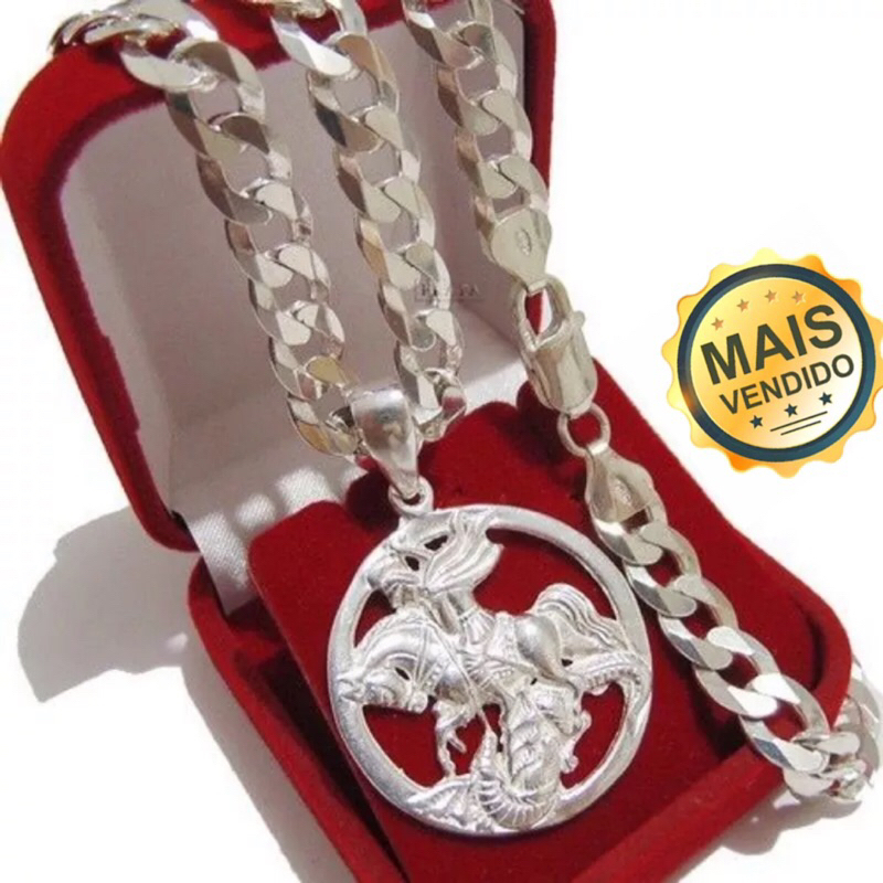 corrente prata 925 grumet 70cm 10mm Pingente São Jorge colar cordão correntinha masculina pode entrar no mar cordao masculino