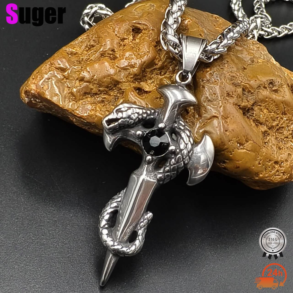 Corrente Masculina Cordão pingente cruz grande aço inox Moeda Antiga com Pingente Snake Espada Vikings Prata 316L colar 60-70cm