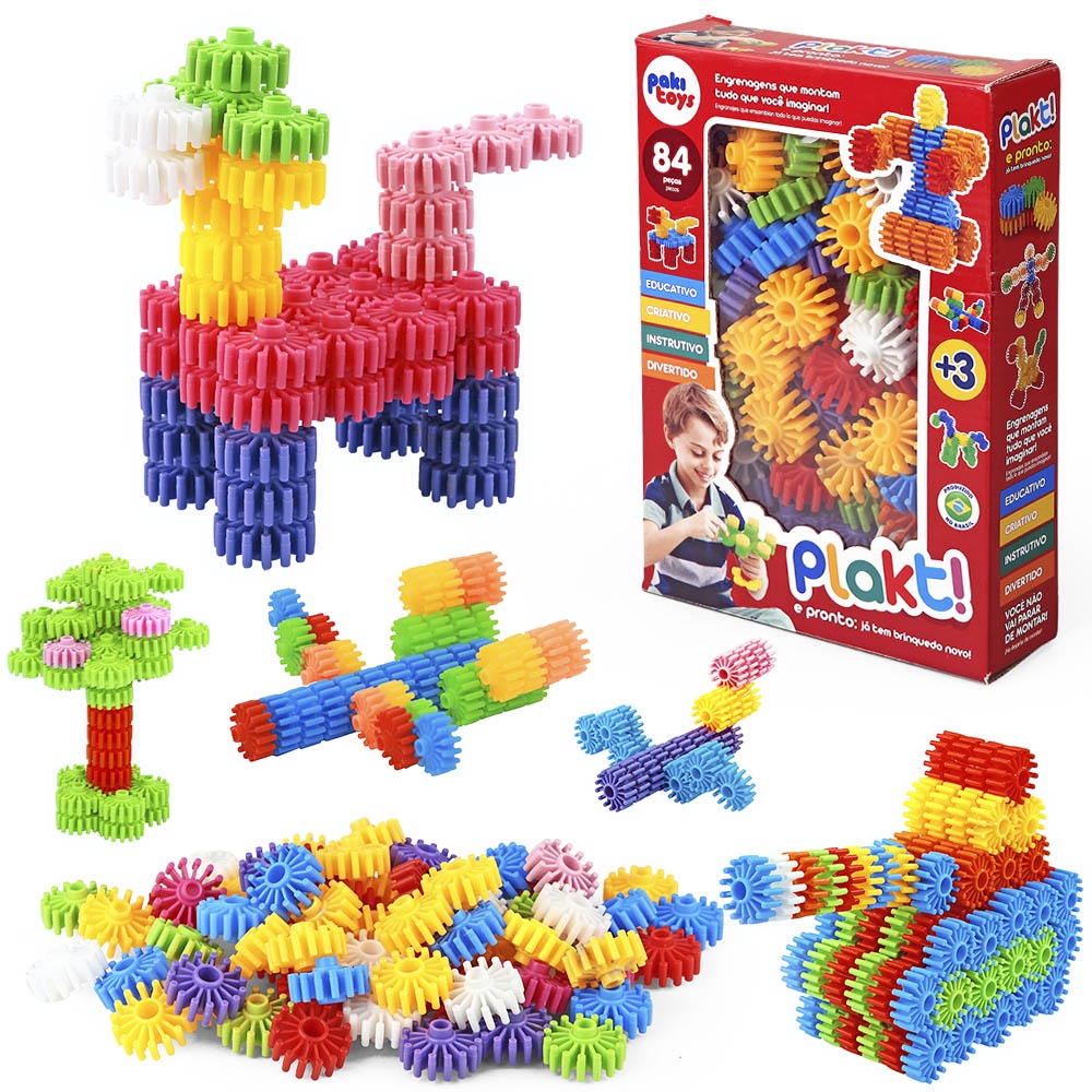 Brinquedo De Montar Engrenagens Educativo Criativo Plakt 84 Peças Presente Para Criança Bloquinhos De Encaixar Para Coordenação Motora Lançamento Novidade Colorido
