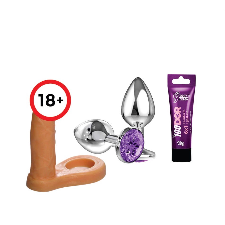 Kit Sex Shop Plug Anal Aco Inox + Gel Lubrificante Intimo Sexual + Anel Peniano Dupla Penetracao Sigilo