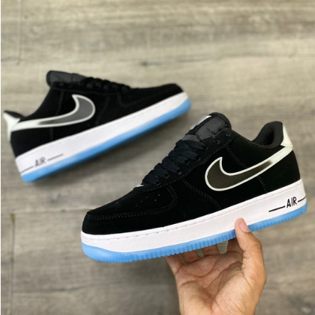 Tenis Air Force Lv8 Preto Sola Azul Refletivo Holográfico Camurça Unissex Promoção Nike Muito barato