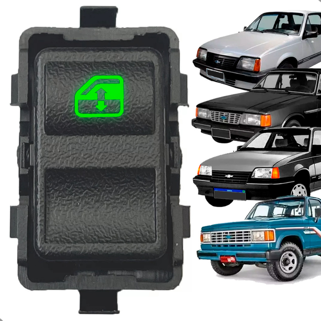 Botão Interruptor Vidro Elétrico Monza Opala Caravan Kadett Bonanza D20 C20 Simples LED Verde 5T