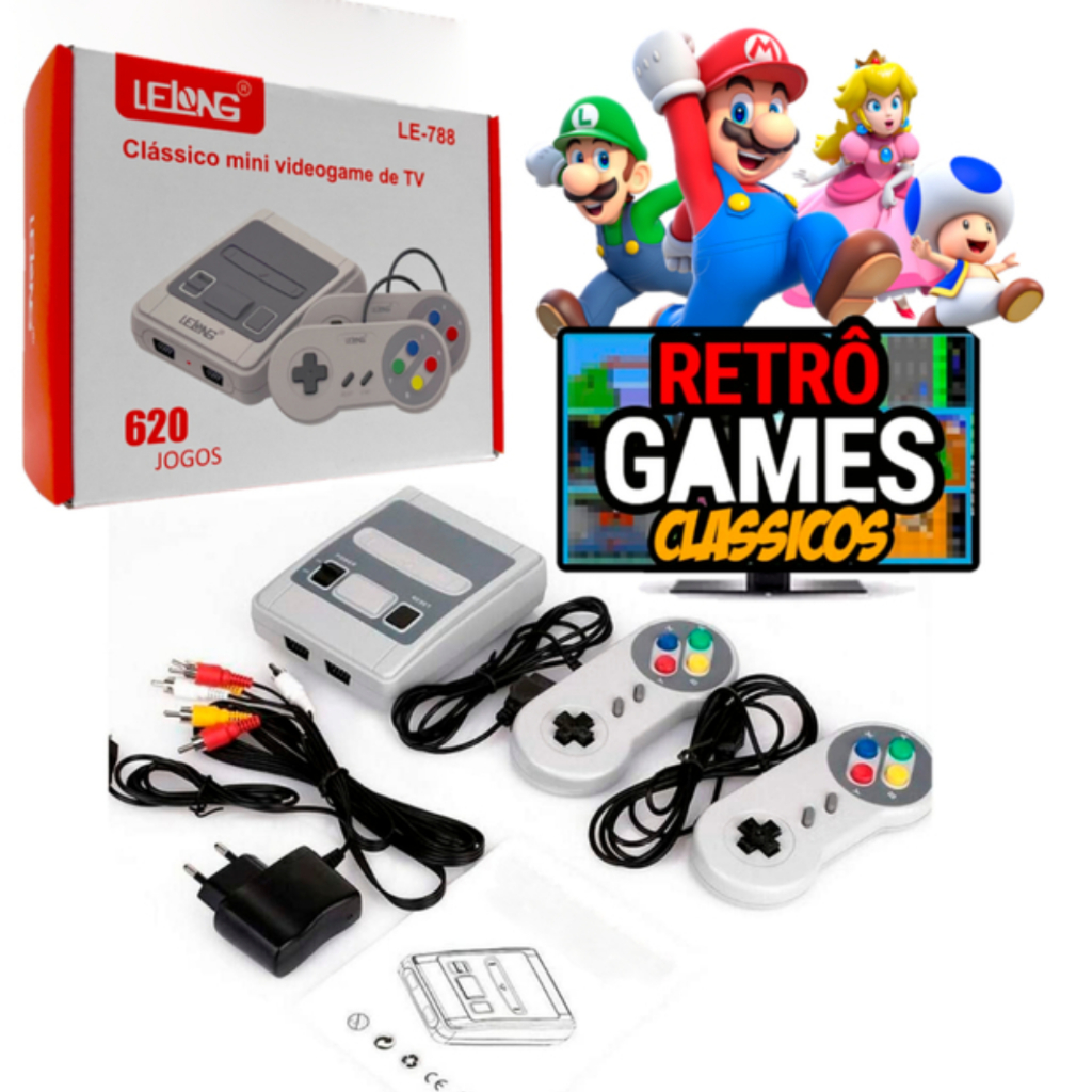 Video Game Retro 620 Jogos Clássicos Conectar Tv portatil Console Super Mini + 2 Controles Leves