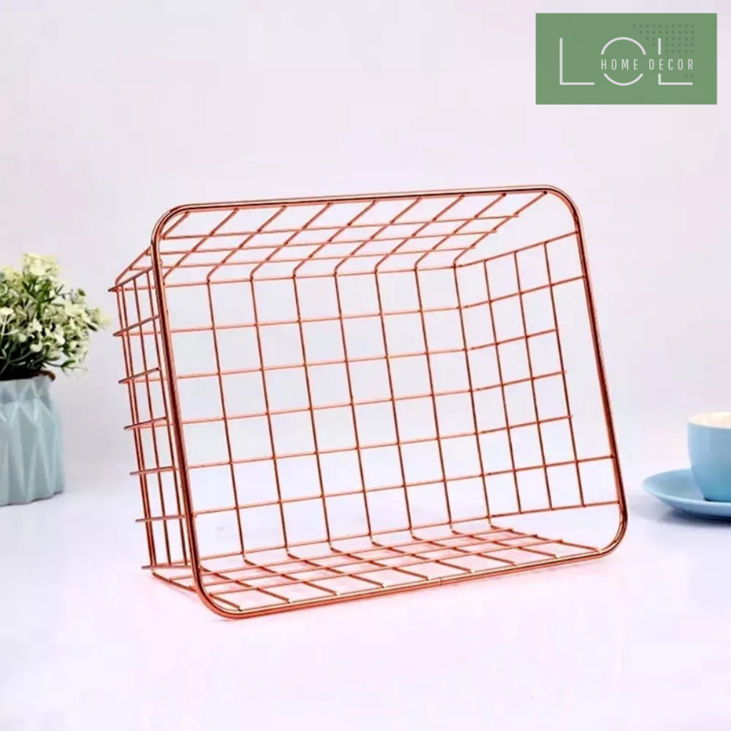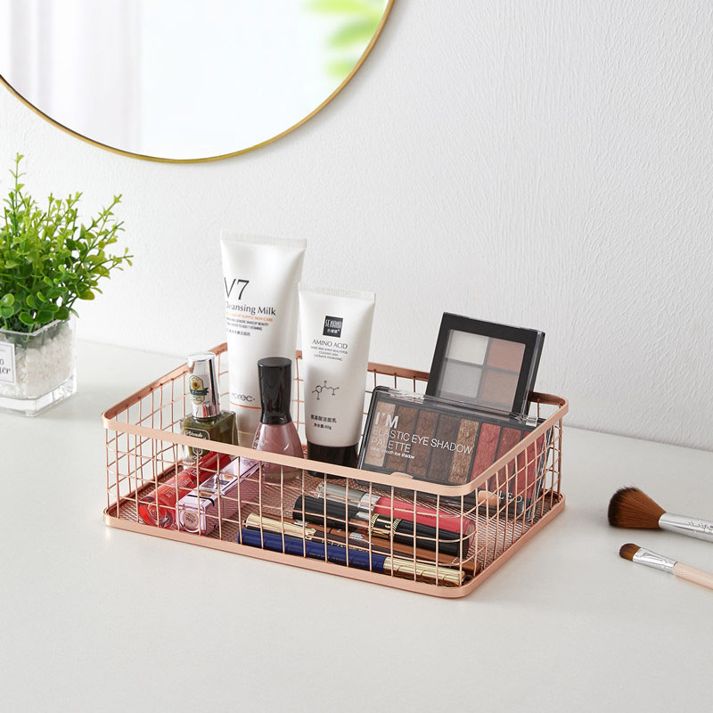 Cesto Organizador Multiuso Aramado Rosê Gold Porta Treco Livros Cestinha de Arame para Armarios Escritórios Mesa organizador lavanderia sala bijuteria brincos maquiagem