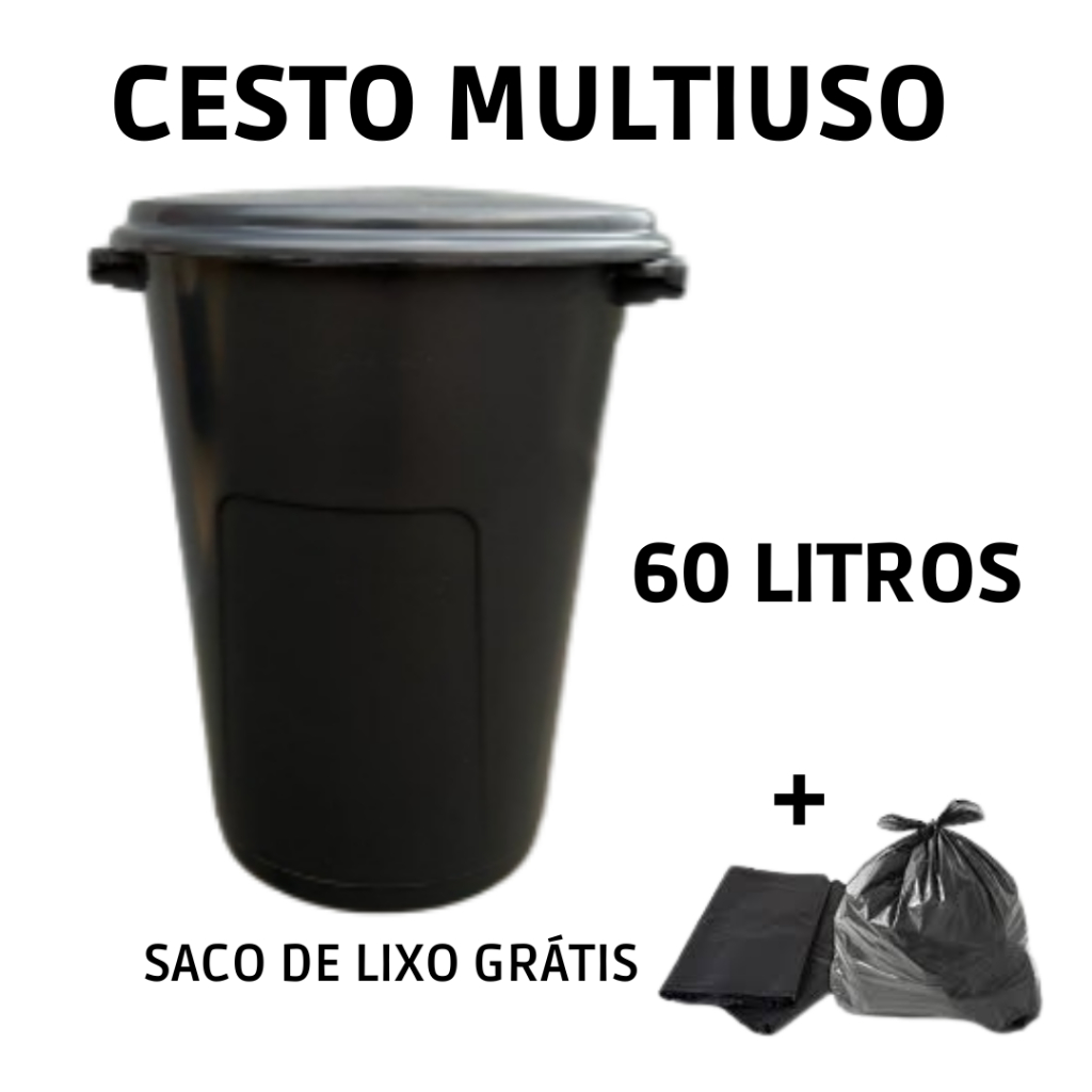 Cesto Organizador de Lixo Multiuso Organizador Fechado com Tampa - 60 Litros ou 35Litros Preto - Casa, Chacaras, Comercios, Industrias - Reforçado - Promoção